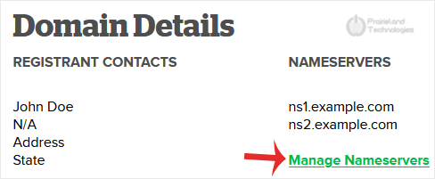 5. Scroll down to the bottom of the page and under Nameservers, click on Manage Nameservers.