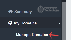 3. After a successful login, select Manage Domains from the My Domains drop-down menu.