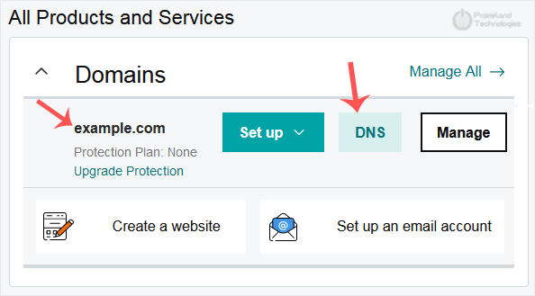 3. After a successful login, under the Domains section. Click on DNS next to the domain you wish to manage.