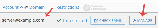 4. If your email address is server@example.com, you should see a Manage option on the right side of your email address. Click on Manage.