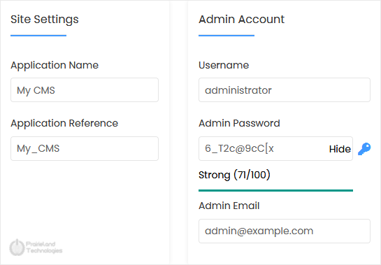 • Admin Username: Your new PyroCMS username (for security reasons, do not use the administrator or the admin username).