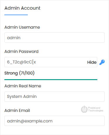 • Admin Real Name: Leave this as it is or use your full name.