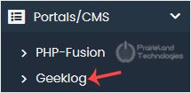 4. On the left side, locate the Portal/CMS category. Click on it and then on the Geeklog link that appears.